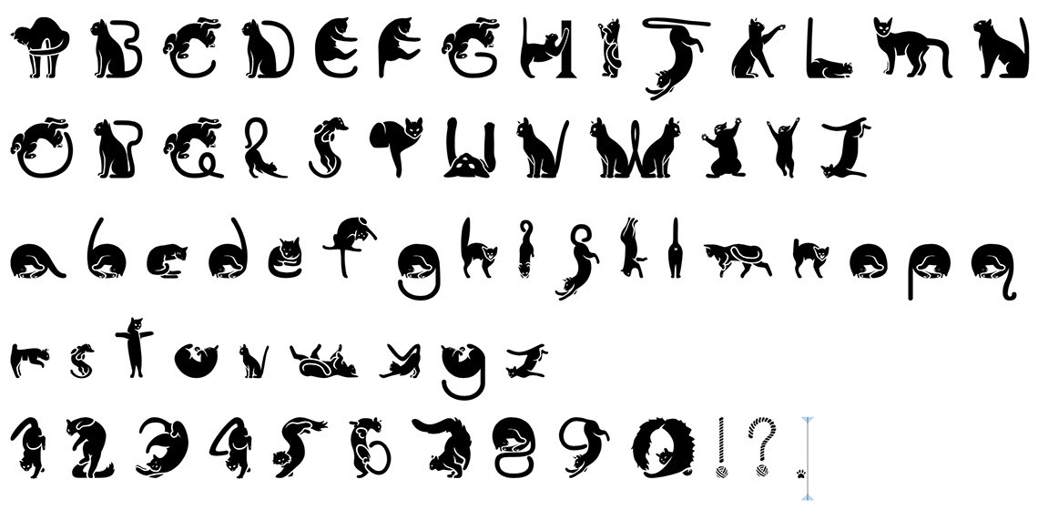In all seriousness, this is one of the biggest and most ambitious projects I’ve tackled so far, both in scale and in the amount of detail involved. Building an entire typeface out of full cat silhouettes and cat-adjacent objects pushed me to think differently about letter structure, balance, and character. I’m genuinely proud of how it turned out, and I hope you all have as much fun experimenting with these little guys as I did bringing them to life.